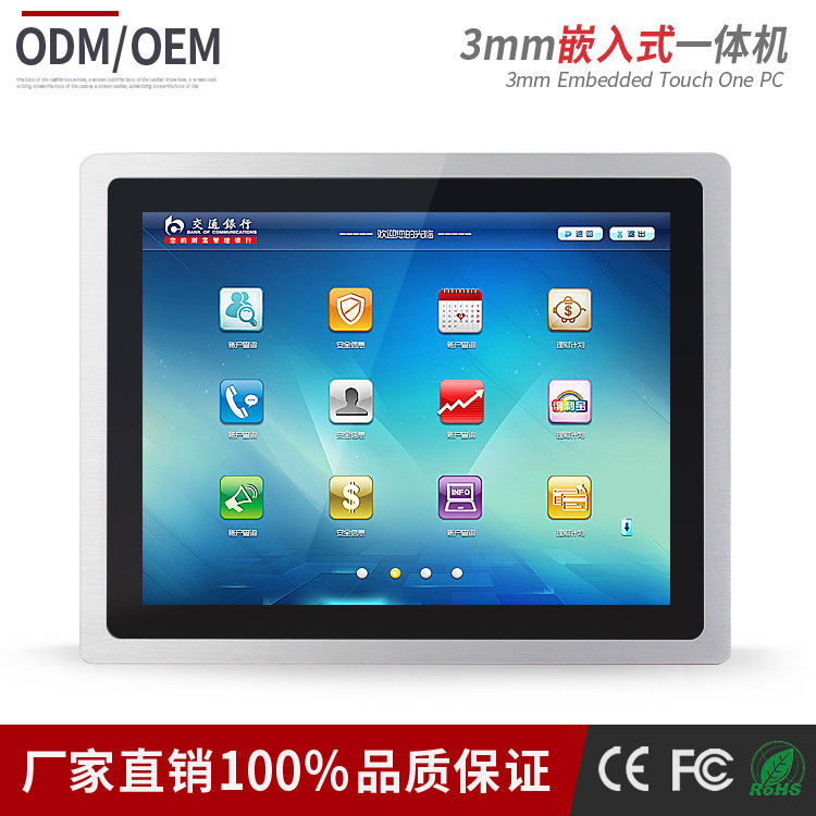 ? ? ? 智能工業(yè)平板一體機(jī)外殼采用鋁合金材料,鑄模沖壓,陽極氧化,拉絲工藝制作而成,致使面框厚度達(dá)到3mm,面板無縫隙純平顯示設(shè)計(jì)達(dá)到IP65要求;內(nèi)部集成X8架構(gòu)Intel Baytrail平臺工控主板(自主開發(fā))、固態(tài)硬盤內(nèi)存、工業(yè)高清液晶屏及十點(diǎn)電容觸摸屏等主要部件,它具有精美輕巧,防塵防水,堅(jiān)固耐用、安全穩(wěn)定,操作方便等特點(diǎn)。