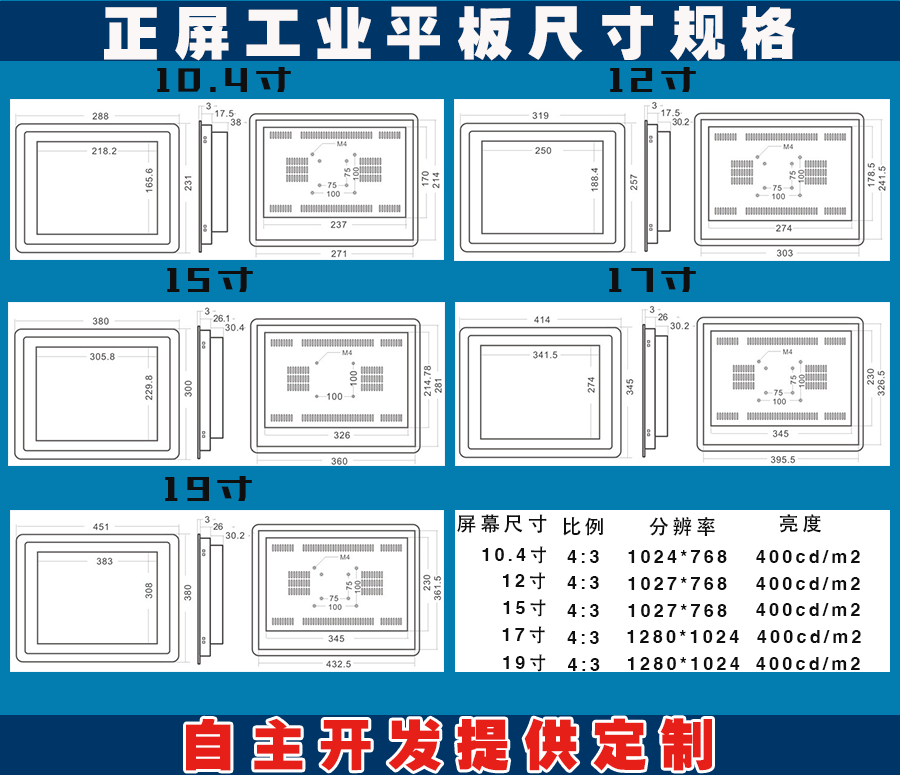 設(shè)備尺寸:10.4寸 12寸 15寸 17寸 19寸 支持定制尺寸