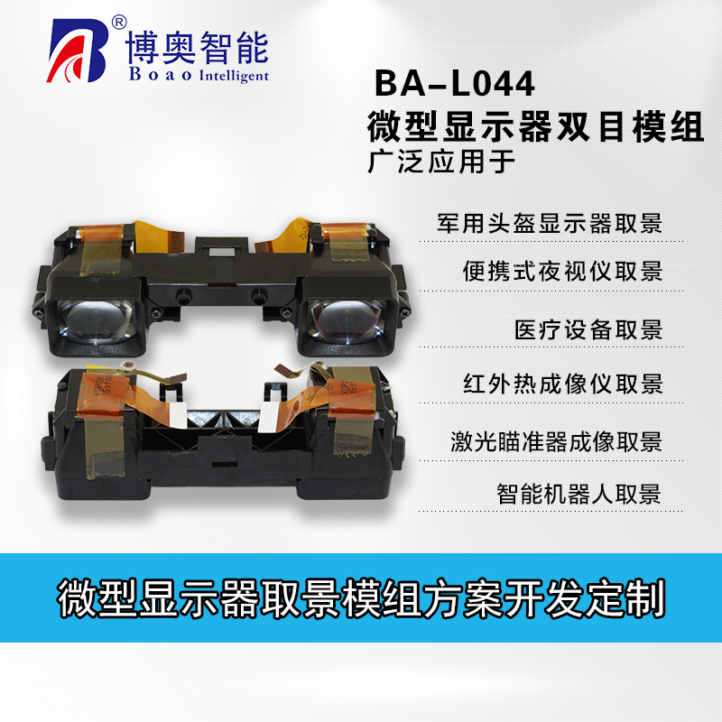 ? ? ? 該顯示微型顯示器模組為減少客戶開發(fā)周期,降低客戶開發(fā)楊本應(yīng)運(yùn)而生,模組含2個(gè)SVGA像素的微型顯示芯片、光源系統(tǒng)、高性能光學(xué)引擎、以及圖像驅(qū)動(dòng)控制電路。該顯示模組可以虛擬出相當(dāng)于2米遠(yuǎn)48英寸的畫面,圖像清晰800*600像素,體積小巧,可以方便地應(yīng)用到客戶的產(chǎn)品開發(fā)設(shè)計(jì)中,該模組主要設(shè)計(jì)應(yīng)用到:軍用頭盔顯示器,軍用顯示器套件、便攜式夜視儀、醫(yī)療設(shè)備取景、紅外熱成像儀取景,激光瞄準(zhǔn)器成像、單兵夜視系統(tǒng)、游戲頭盔、智能機(jī)器人取景、計(jì)算機(jī)成像、遠(yuǎn)程教育、FPV眼鏡、AV/VR眼鏡等。