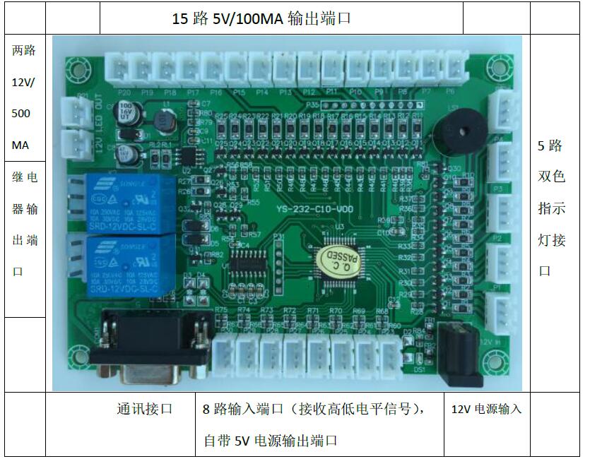 l 15路5V/100mA輸出,可控制各操作提示燈條;
