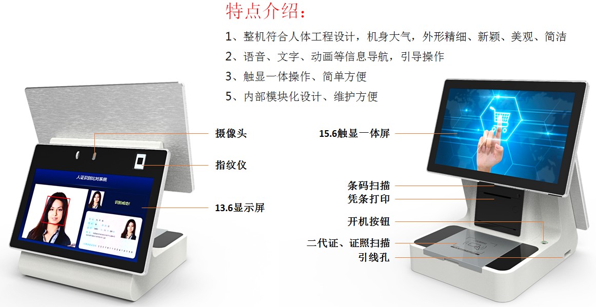 BA-FK0A訪客機是博奧智能針對政府機關(guān)、軍隊、公安、法院、學(xué)校、事業(yè)單位、花園小區(qū)、高檔寫字樓、工廠等門衛(wèi)傳達室設(shè)計加工的來訪人員信息化自動登記設(shè)備, 從而代替了傳統(tǒng)的手工登記,有效的提高了門衛(wèi)管理工作效率及證件信息登記準(zhǔn)確性;日后查詢來訪人員信息更方便快捷;整機符合人體工程設(shè)計,機身小巧,外形新穎、美觀、簡潔,內(nèi)部模塊化設(shè)計、維護方便;采用多點電容觸摸屏設(shè)計,點擊靈敏、操作方便,支持雙屏同步顯示和異步顯示,集成證件OCR掃描識別、身份證讀取,IC卡讀寫、人臉抓拍比對、指紋采集比對、條碼掃描、訪客單打印等功能