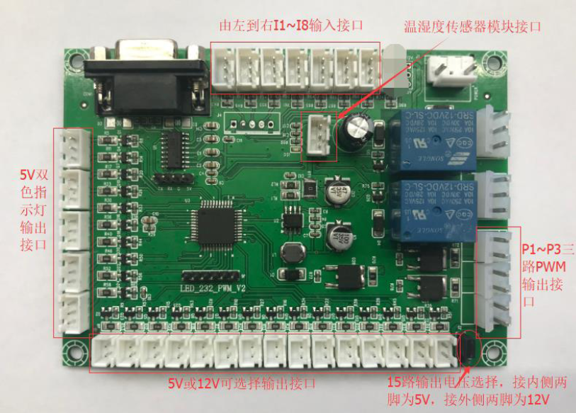 15路5V或12V可控制輸出,可接入操作提示燈條;