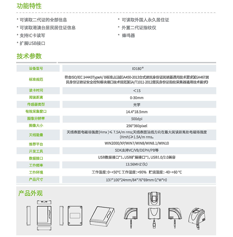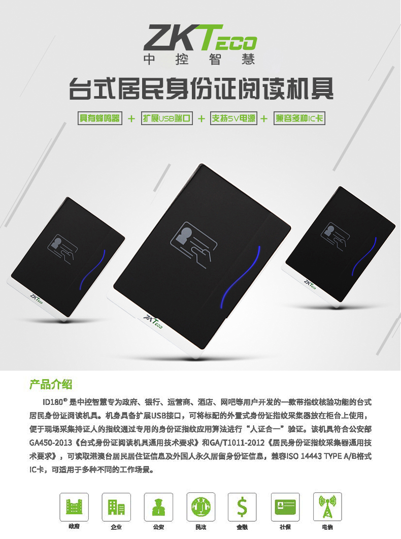 中控ID180臺式居民身份證閱讀器IC卡讀寫器