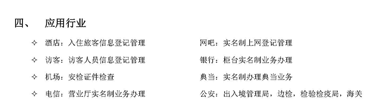 2 訪客:訪客人員信息登記管理 銀行:柜臺實名制業(yè)務辦理