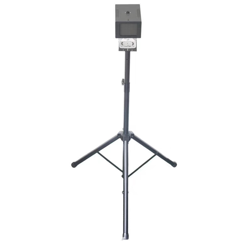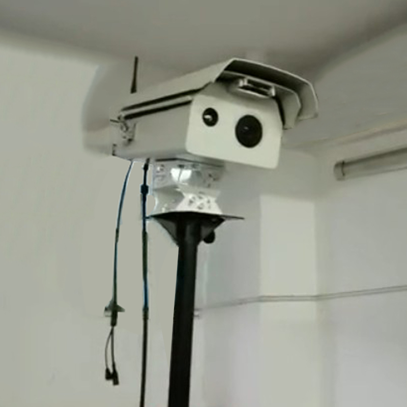 選擇一個室內(nèi)壞境,通過三腳架或支架固定安裝熱像儀,如果使用外置485溫感(溫感485接口和熱像的485接口連接,供電也可以和熱像共用一個電源),場地有條件情況下,把外置485溫感安裝在熱像畫面的左上方或右上方。有些場地沒有條件,可以把外置溫感放置在三角架下。如果外置溫感安裝在畫面中(等同于黑體的作用),環(huán)境溫度的變化對測溫精度度影響很小,設備會自動校正,如果安裝在別處,畫面中背景環(huán)境溫度變化的話,會影響測溫精度,如果測溫精度下降,可手動重新校正溫度。如果使用黑體,把黑體放置在監(jiān)控畫面中,一般選左右上方。