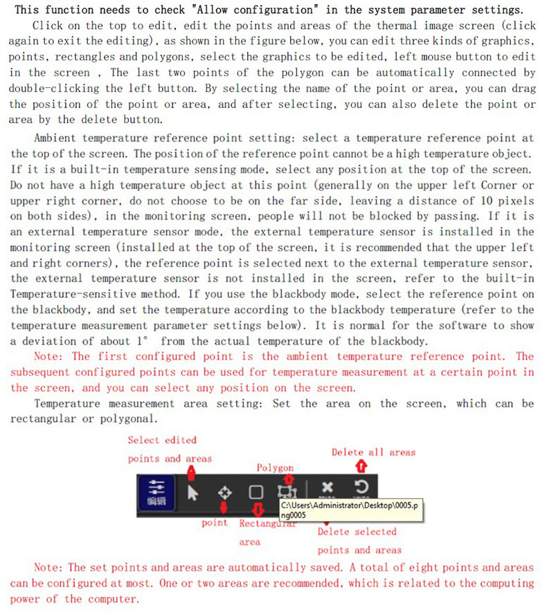 注:第一個配置的點是環(huán)境溫度參考點,后續(xù)配置的點可以用于畫面中某個點的測溫,可以選擇畫面的任意位置。