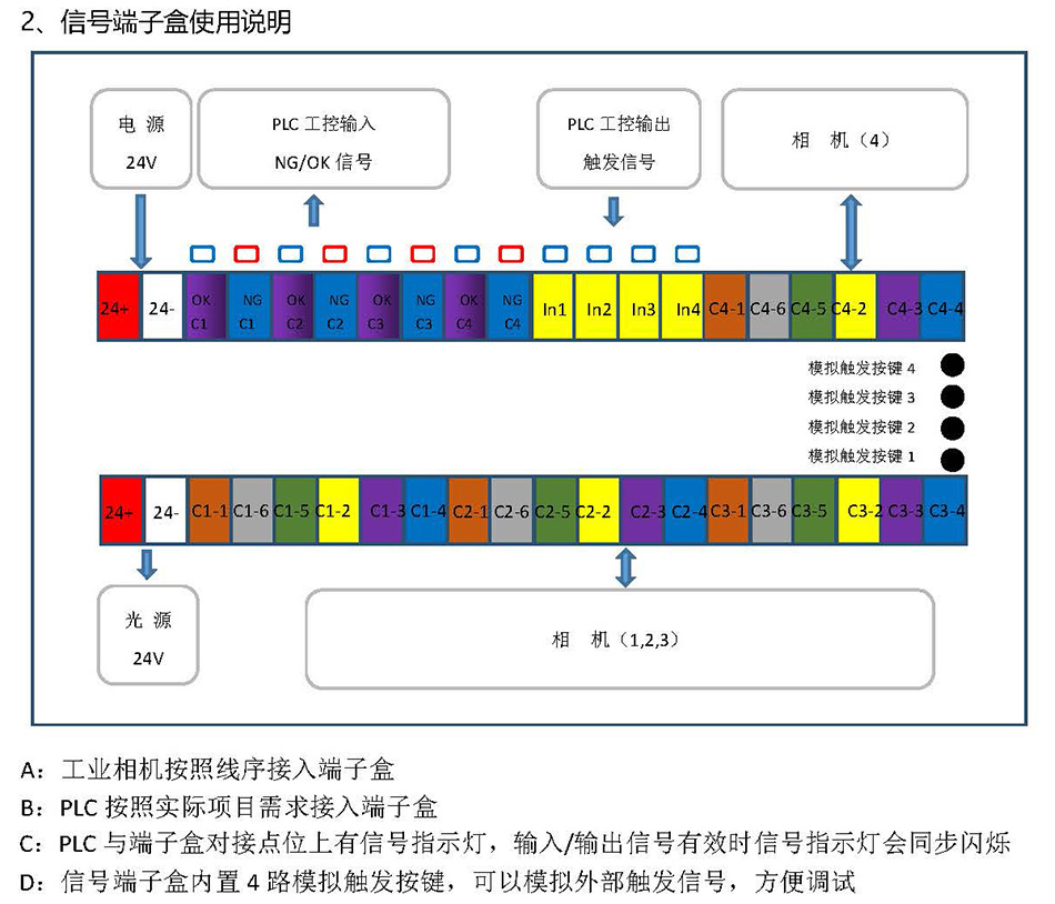 1.?????? 四相機I/O,兩路24V電源