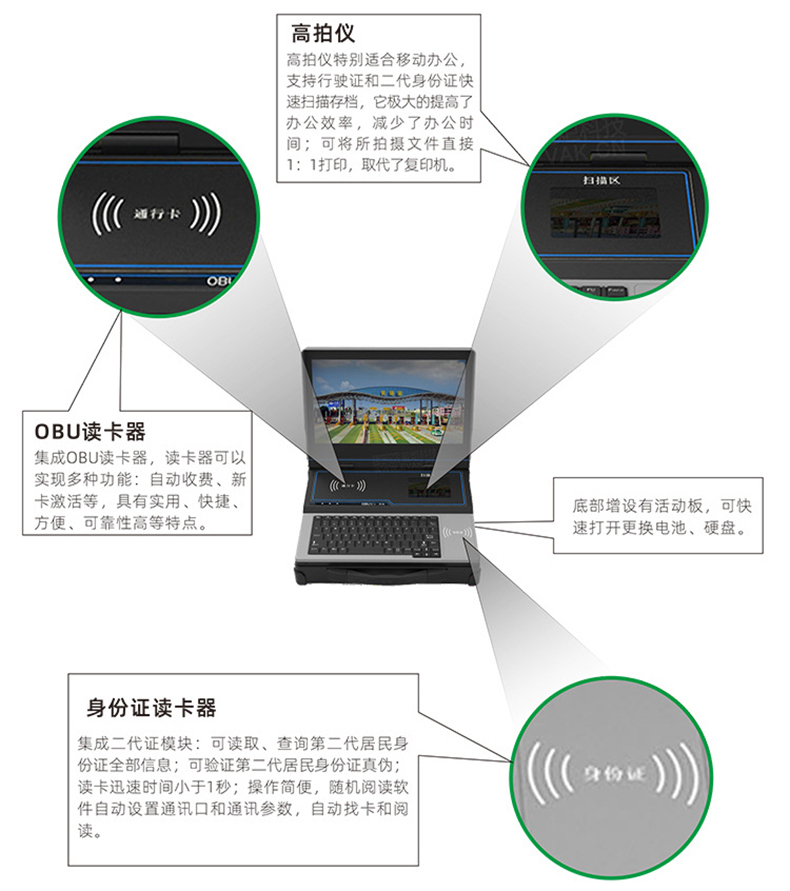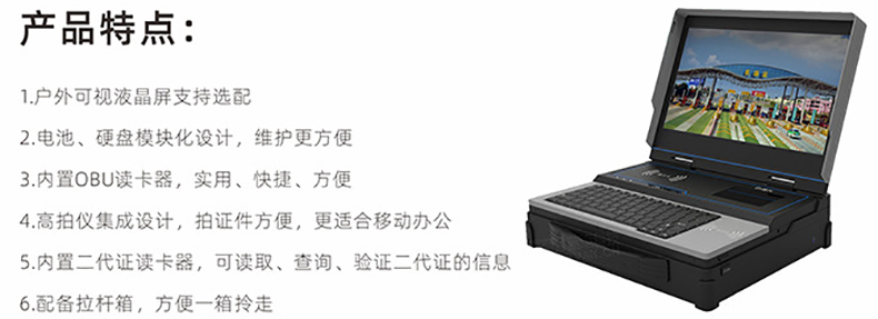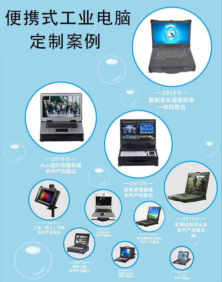 便攜式工業(yè)電腦具有性能穩(wěn)定,集成高,設(shè)備操作簡單;機身采用鋁合金材質(zhì),表面硬陽極氧化處理;全方位的防震動橡膠墊和機箱內(nèi)部結(jié)構(gòu)之間的防震技術(shù),使便攜式工業(yè)電腦具有極強的抗震性能,能夠在較惡劣的環(huán)境下滿足客戶的各種程度的測試和工作需求。博奧智能可根據(jù)客戶需求定制開發(fā)各種非標便攜式筆記本電腦,定制包括功能、外觀、配置等服務(wù)。