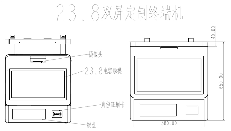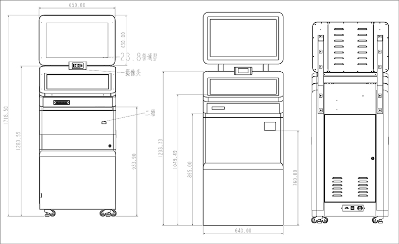 23.8寸自助終端機美觀大方,外殼采用鈑金烤漆工藝,集成雙屏23.8寸高清液晶屏,可上下調節(jié)雙目攝像頭,發(fā)卡模塊,身份證閱讀器,鍵盤等模塊,可配合系統(tǒng)集成軟件開發(fā)商廣泛用于多種場所,同時為客戶提供功能外觀結構定制設計服務。