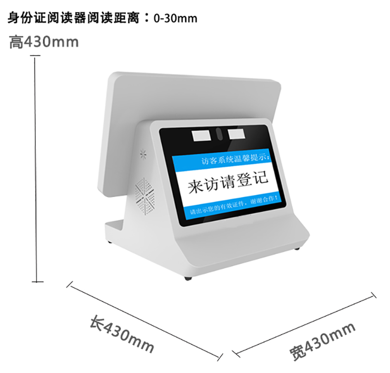 訪(fǎng)客機(jī)管理系統(tǒng)主要針對(duì)來(lái)訪(fǎng)人員進(jìn)行信息化登記,相比傳統(tǒng)手工登記提高了工作效率,同時(shí)快將訪(fǎng)客信息以電子化形式保存,方便日后查詢(xún),訪(fǎng)客機(jī)采用鈑金烤漆工藝外殼,集成15.6寸觸摸一體屏和11.6寸顯示屏,身份證閱讀器、打印機(jī)、高清攝像頭、條碼掃描等模塊 。