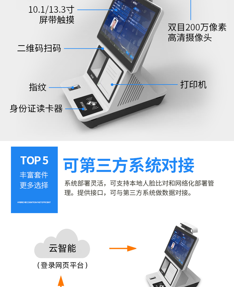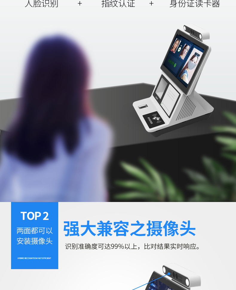 單屏智能訪客機(jī)系列產(chǎn)品,搭配13.3寸雙面LCD顯示屏幕(可選10.1寸),內(nèi)嵌深度學(xué)習(xí)人臉識別算法。內(nèi)嵌身份證解密模塊和指紋模塊。該產(chǎn)品具備人臉檢測、人證比對、活體判斷等強(qiáng)大功能??捎行椭脩艄芾碓L客出入人員權(quán)限,有助于防范疫情。所有數(shù)據(jù)既可脫機(jī)管理,也可以連上云平臺。也可搭配人臉面板機(jī)聯(lián)動,實(shí)現(xiàn)訪客出入無紙化??蓮V泛應(yīng)用于小區(qū)門口、學(xué)校出入口、酒店入住,以及寫字樓等場景!