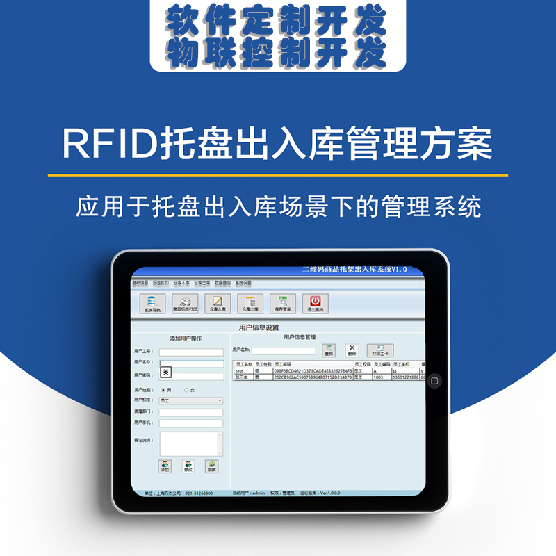 2)叉車師傅操作:改造叉車帶RFID讀寫器,叉起托盤的同時通過叉車作業(yè)平板操作,將托盤貨物相關信息寫入托盤標簽,并進行入庫操作。 監(jiān)督人員操作:通過移動式的手持機將托盤貨物信息寫入托盤標簽,并進行入庫操作。