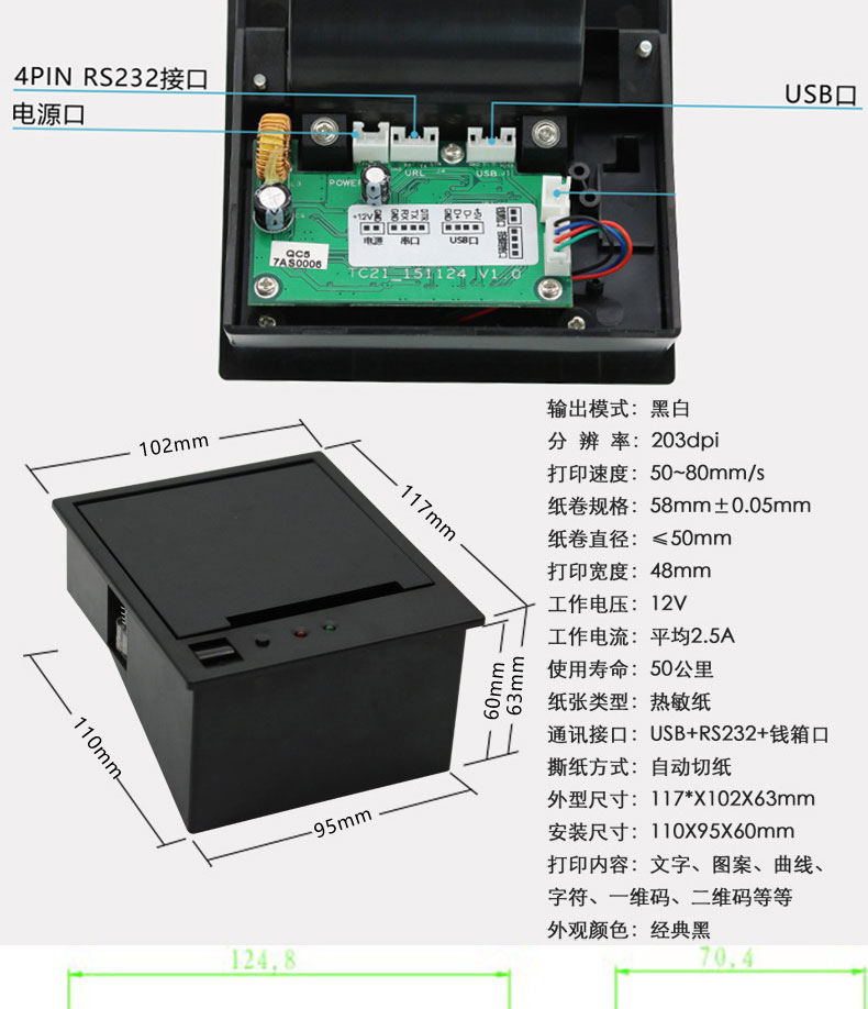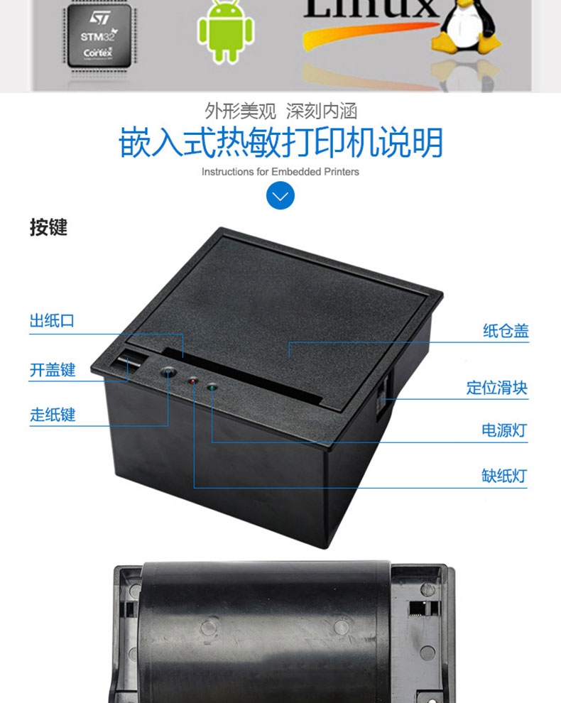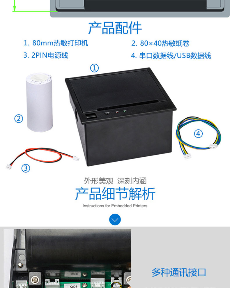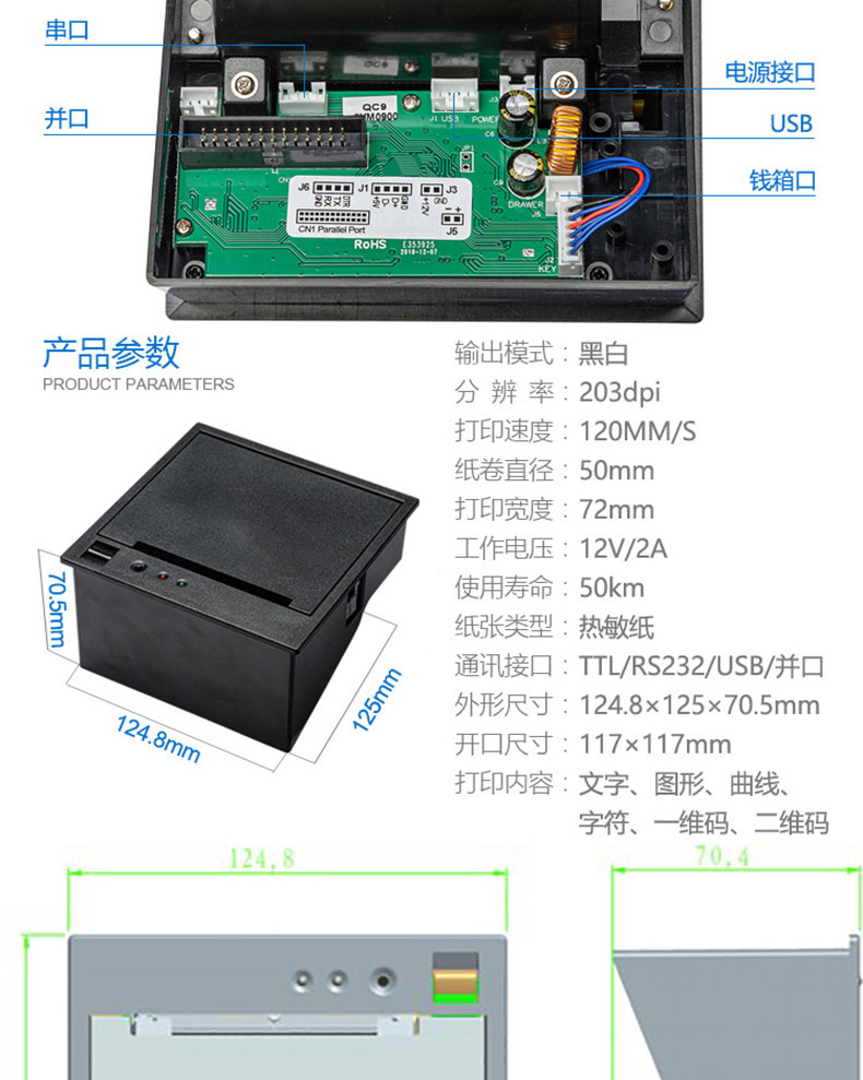自助終端設(shè)備收銀電子稱帶切刀80mm嵌入式面板熱敏打印機(jī)PCBA控制板方案定制開發(fā)