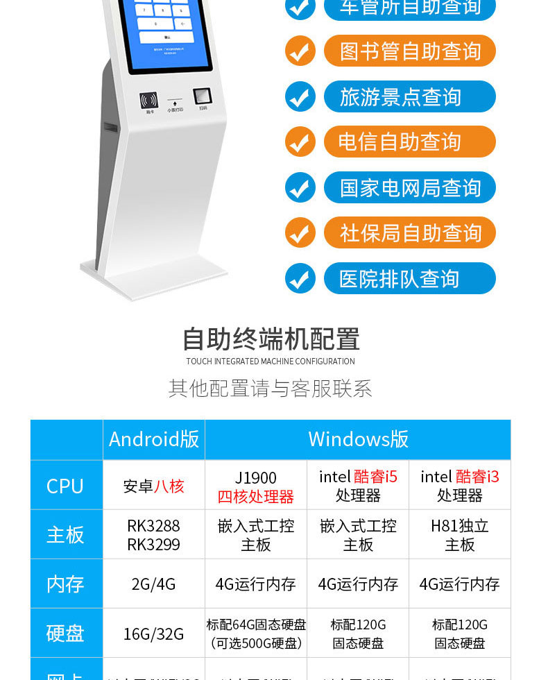醫(yī)院銀行酒店政務(wù)服務(wù)21.5寸32寸觸摸屏查詢一體機(jī)自助終端應(yīng)用管理系統(tǒng)軟件開發(fā)
