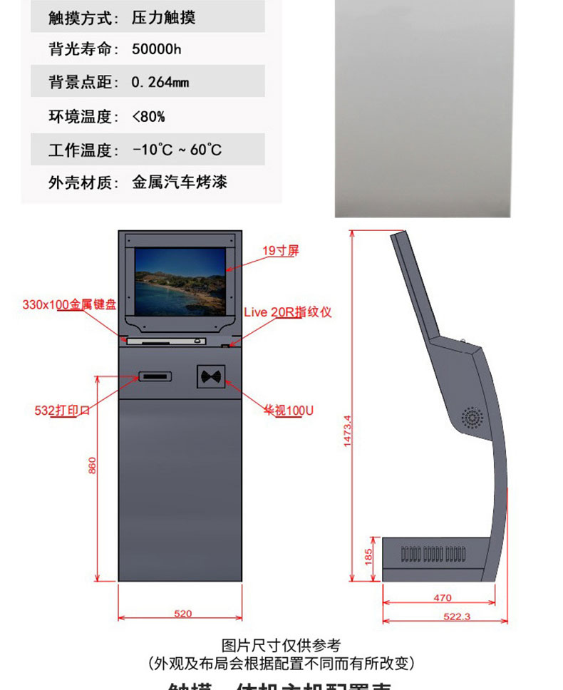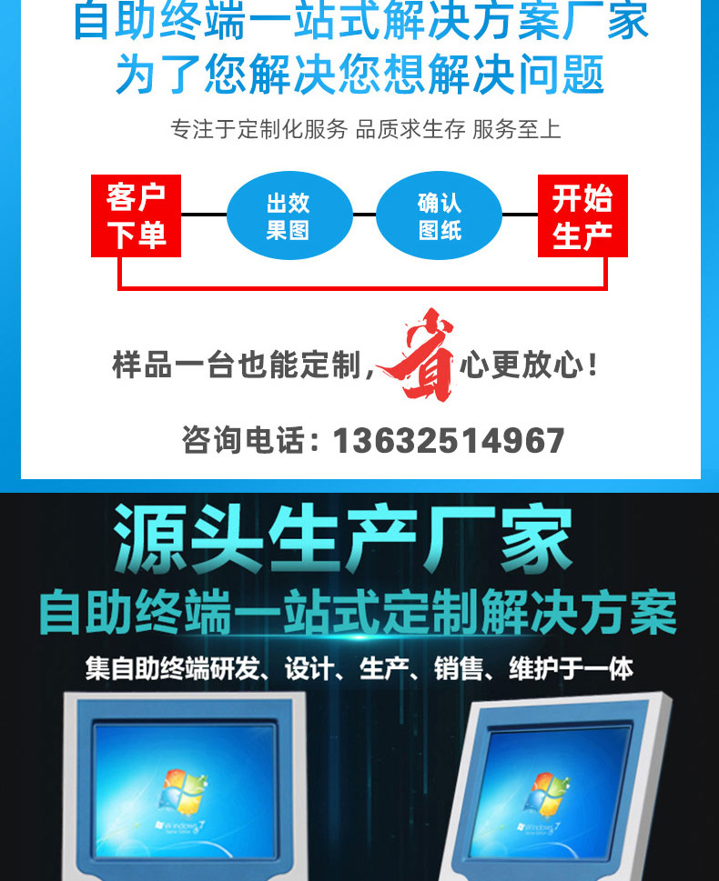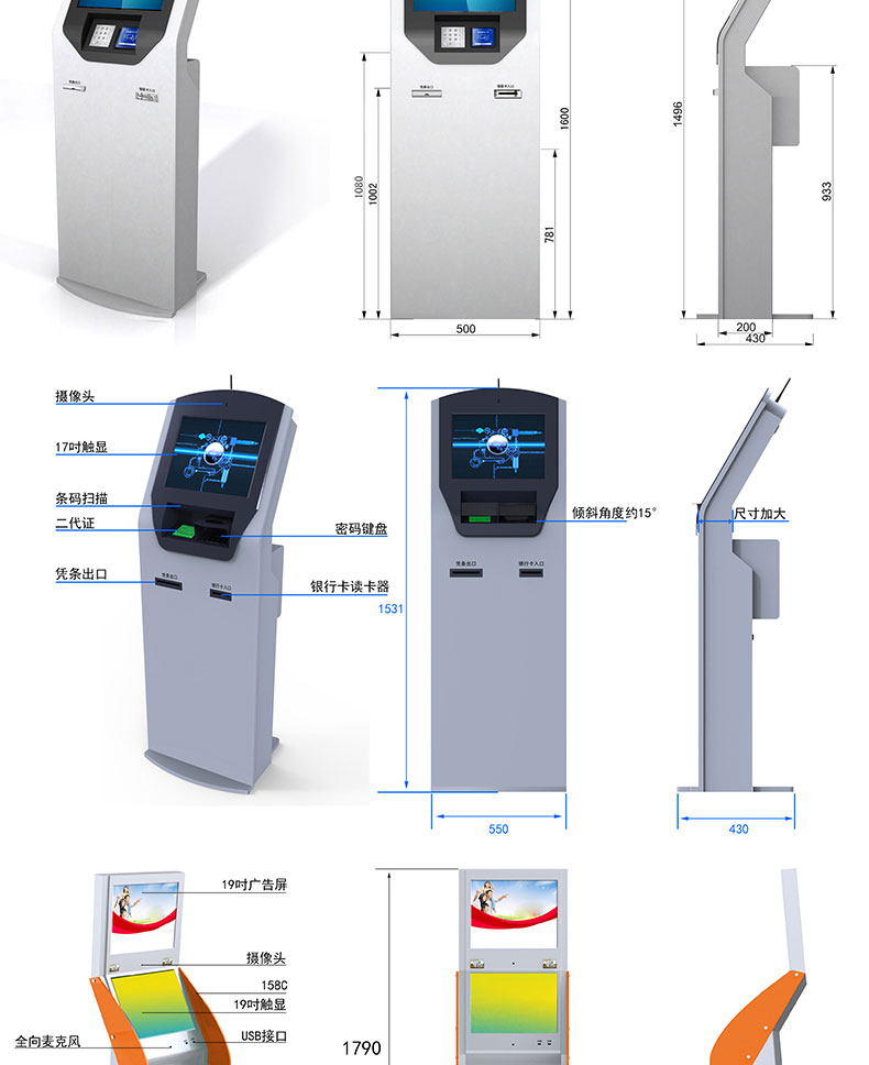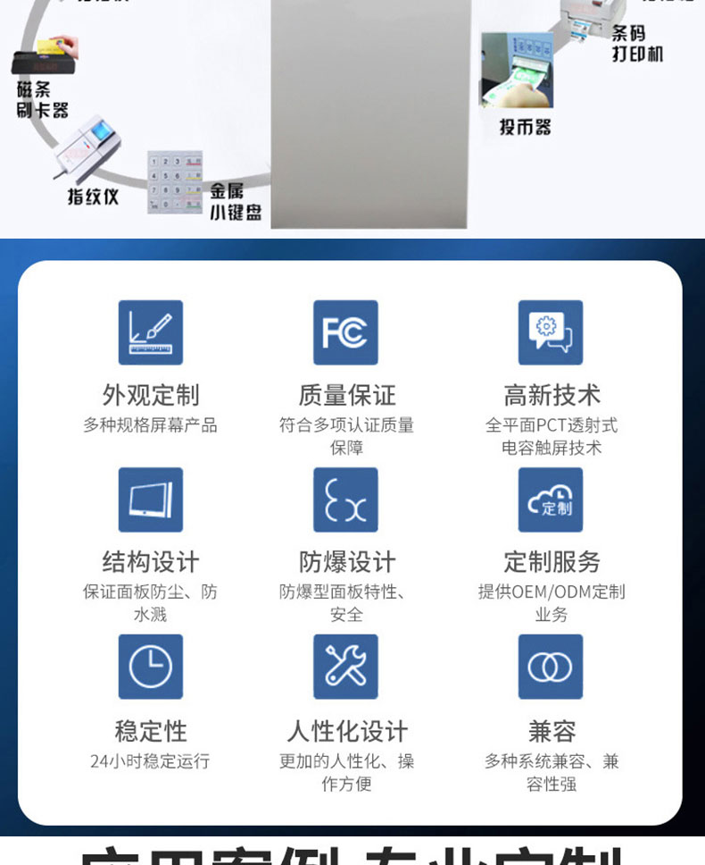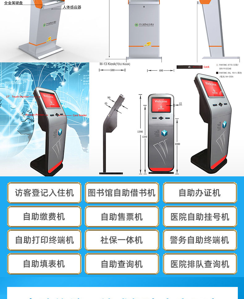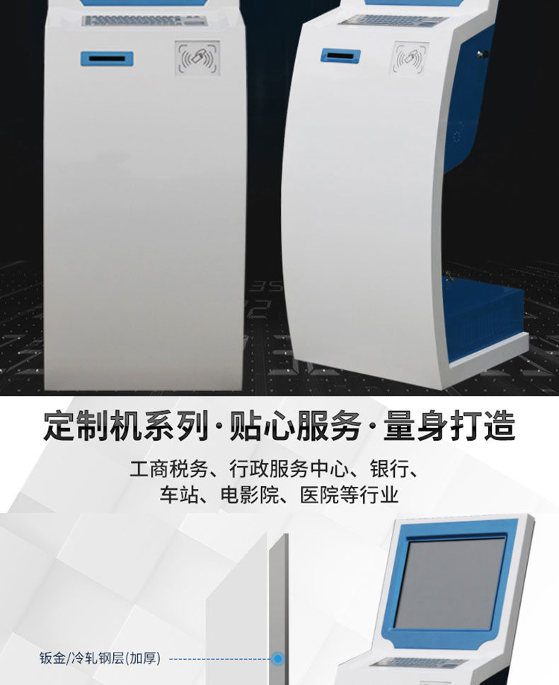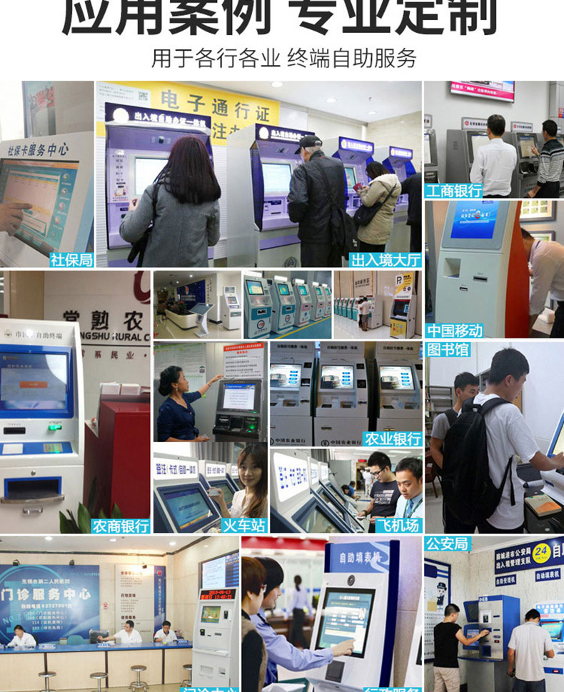 自助終端機(jī)定制:定制各種場(chǎng)景各種款式非標(biāo)終端機(jī);例如訪客機(jī)、景區(qū)自助取票機(jī)、醫(yī)院繳費(fèi)查詢機(jī)、醫(yī)院自助取單機(jī)、社保查詢機(jī)、室內(nèi)外廣告機(jī)、排隊(duì)叫號(hào)機(jī)、工控一體機(jī)、電力繳費(fèi)查詢機(jī)、圖書(shū)自助銷售機(jī)、便攜式計(jì)算機(jī)、酒店自助入住機(jī)、自助收銀機(jī)等終端。