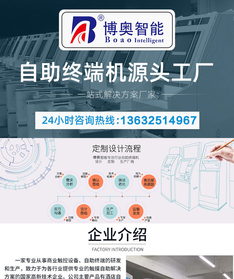 深圳市博奧智能科技有限公司成立于2011年,坐落于科技前沿——深圳,公司自成立以來一直專業(yè)致力于自助終端機(jī)、工業(yè)控制計(jì)算機(jī)、電子產(chǎn)品PCBA控制板、軟件等產(chǎn)品定制開發(fā)服務(wù);同時(shí)批發(fā)銷售身份證閱讀器、證件OCR掃描儀、高拍儀、訪客機(jī)、人臉識(shí)別測(cè)溫機(jī)、閘機(jī)、安檢門、物聯(lián)網(wǎng)控制等產(chǎn)品;