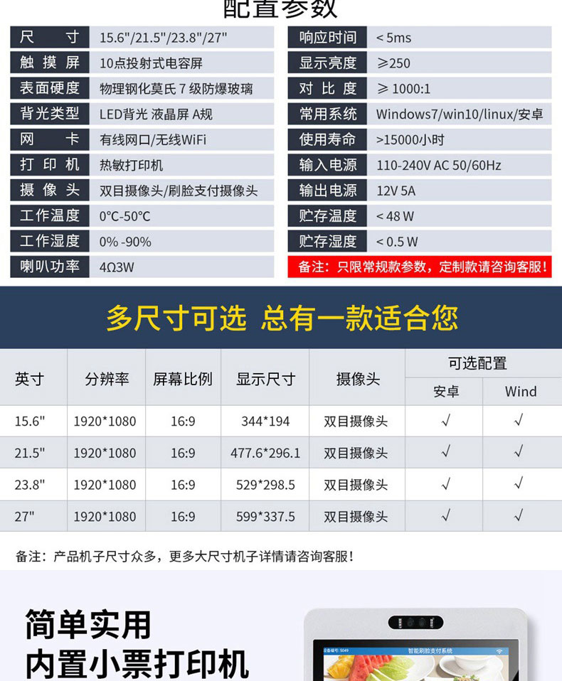智能多功能收銀電容觸摸一體機(jī)人臉識(shí)別掃碼打印自助點(diǎn)餐結(jié)算終端
