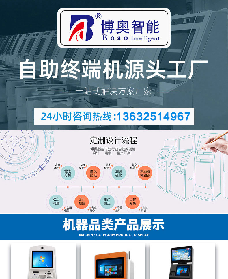 深圳市博奧智能科技有限公司專業(yè)提供自助終端機、觸摸查詢一體機、廣告機、液晶顯示器等產(chǎn)品的硬件、軟件研發(fā)與設計加工OEM/ODM等一站式服務;我們一直秉承以產(chǎn)品質量為核心、客戶至上、服務共贏為宗旨,為金融、醫(yī)療、教育、人工智能、政府工程項目、智慧城市、軌道交通、商業(yè)自助服務、廣告?zhèn)髅降刃袠I(yè)提供質量過硬的產(chǎn)品和優(yōu)質的服務。