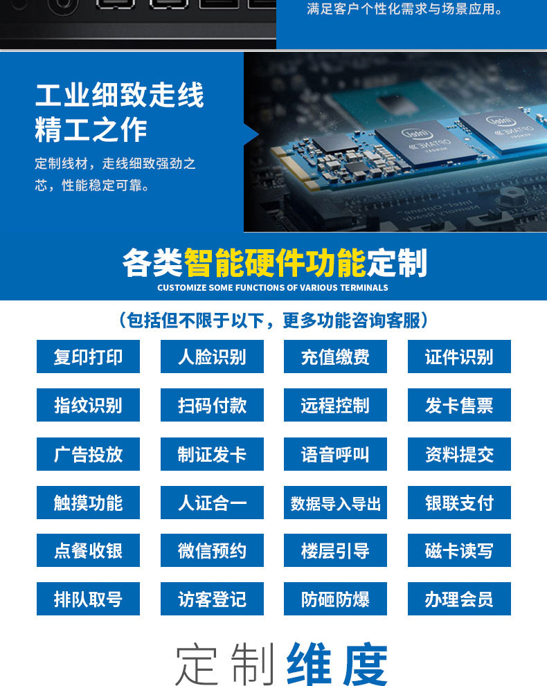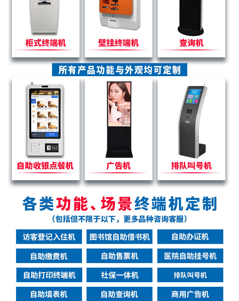 深圳市博奧智能科技有限公司專業(yè)提供自助終端機(jī)、觸摸查詢一體機(jī)、廣告機(jī)、液晶顯示器等產(chǎn)品的硬件、軟件研發(fā)與設(shè)計加工OEM/ODM等一站式服務(wù);我們一直秉承以產(chǎn)品質(zhì)量為核心、客戶至上、服務(wù)共贏為宗旨,為金融、醫(yī)療、教育、人工智能、政府工程項目、智慧城市、軌道交通、商業(yè)自助服務(wù)、廣告?zhèn)髅降刃袠I(yè)提供質(zhì)量過硬的產(chǎn)品和優(yōu)質(zhì)的服務(wù)。