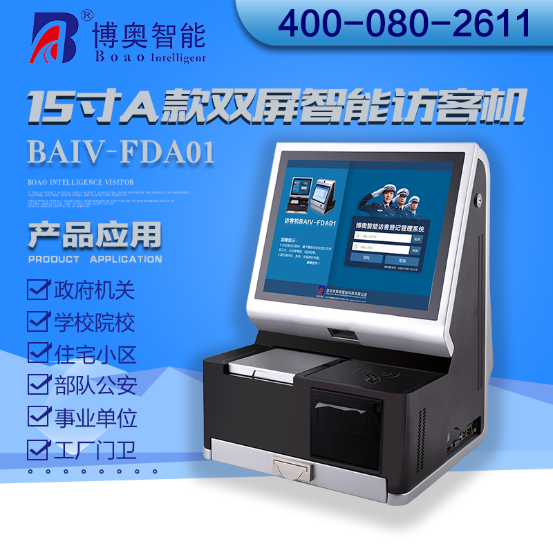 ? ? ? ?15寸A款雙屏智能訪客機主要用在政府機關、關口、機場、軍隊、公安、法院、學校、事業(yè)單位、花園小區(qū)、高檔寫字樓、工廠等門衛(wèi)傳達室用來訪客登記管理。