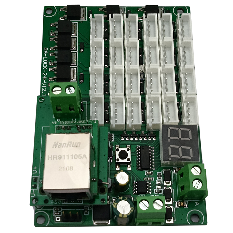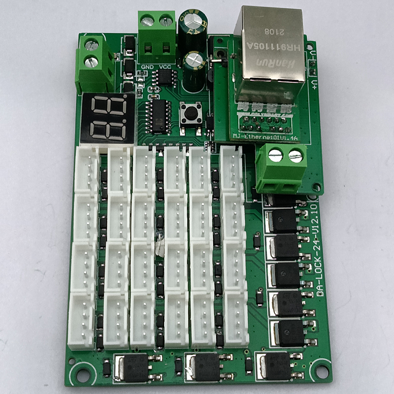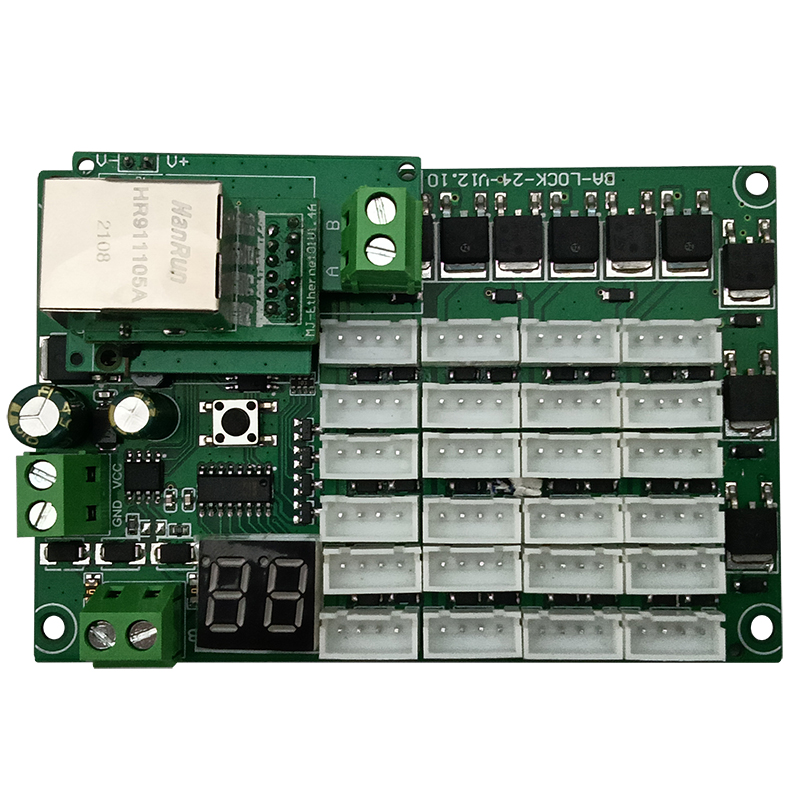 智能電子柜RJ45網(wǎng)口TP/IP協(xié)議485通信級聯(lián)24路鎖控板軟件APP開發(fā)PCBA方案定制