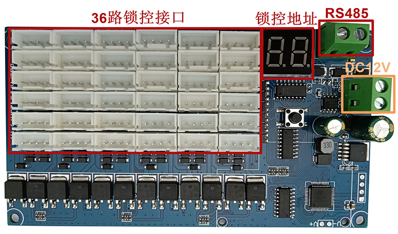 智能格子柜485通信36路鎖控板狀態(tài)信號反饋一鍵全開支持定制小程序軟件開發(fā)