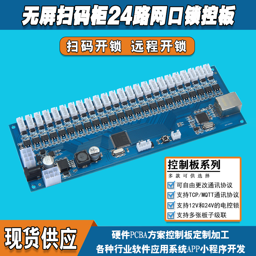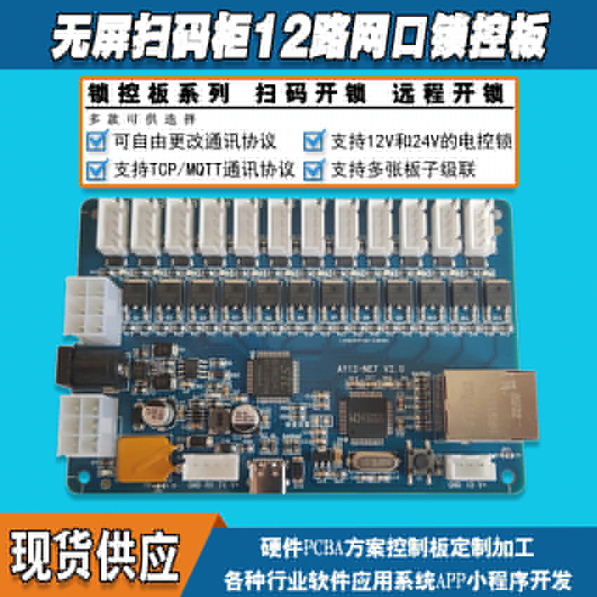 無(wú)屏掃碼智能柜網(wǎng)口鎖控板工廠現(xiàn)貨供應(yīng)支持定制軟件管理系統(tǒng)小程序按需開發(fā)開發(fā)格子柜電磁鎖控制按需定制 免費(fèi)開發(fā)工業(yè)控制 智能電器物聯(lián)家居主控PCBA方案硬件電路板