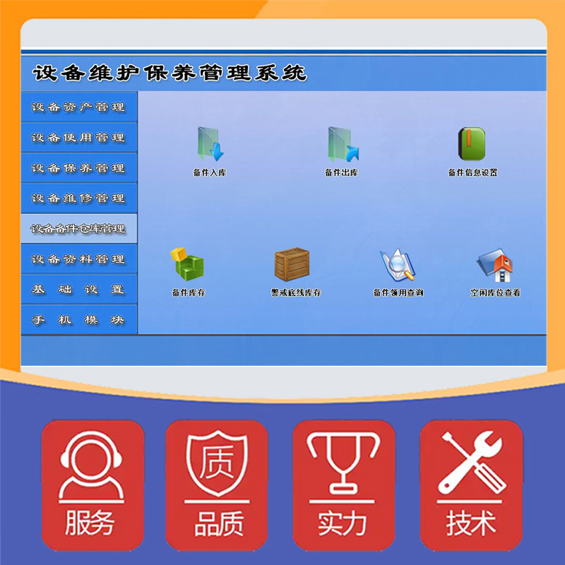 - 備件庫(kù)存:查看備件庫(kù)存情況,為設(shè)備維修提供及時(shí)支持。