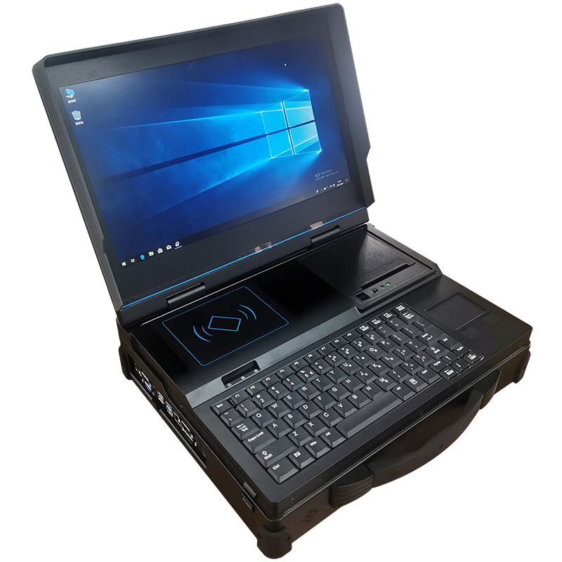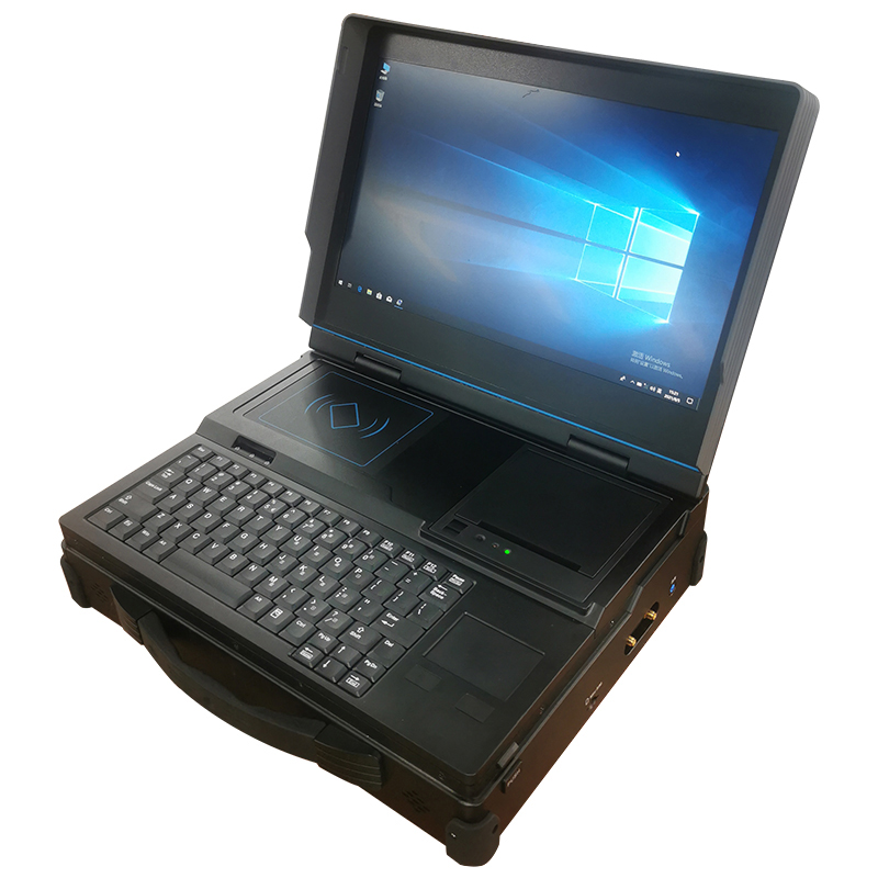 15.6寸便攜式工控計(jì)算機(jī)采用低能耗工業(yè)主板,4G內(nèi)存256G固態(tài)硬盤,集成多功能讀卡器(身份證讀取 IC卡讀寫 銀行卡讀?。?/span>80mm熱敏打印機(jī)、無線WIFI、4G等功能;機(jī)殼采用高強(qiáng)度鋁鎂合金結(jié)構(gòu)、表面采用防刮涂層處理,全方位的防震動(dòng)橡膠墊和機(jī)箱內(nèi)部結(jié)構(gòu)之間的防震技術(shù),使便攜式業(yè)電腦具有極強(qiáng)的抗震性能,能夠在較惡劣的環(huán)境下滿足客戶的各種程度的測(cè)試和工作需求;產(chǎn)品具有功能強(qiáng)大、性能穩(wěn)定、操作簡(jiǎn)單、便攜、加固、 輕便、擴(kuò)展性強(qiáng)等特點(diǎn);博奧智能可根據(jù)客戶需求定制開發(fā)各種非標(biāo)便攜式筆記本電腦及整合各類功能模塊,定制包括功能、外觀、功能配置等服務(wù)。