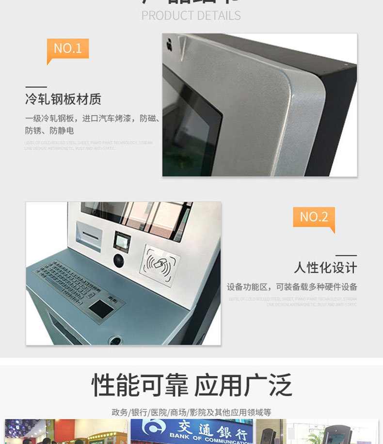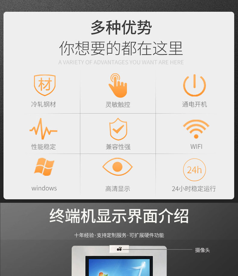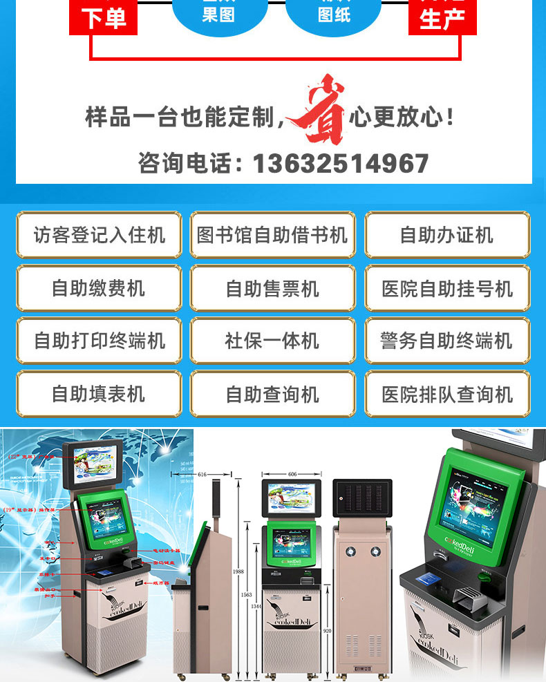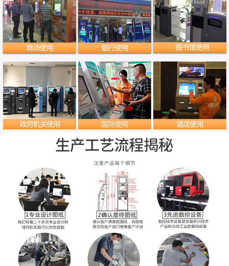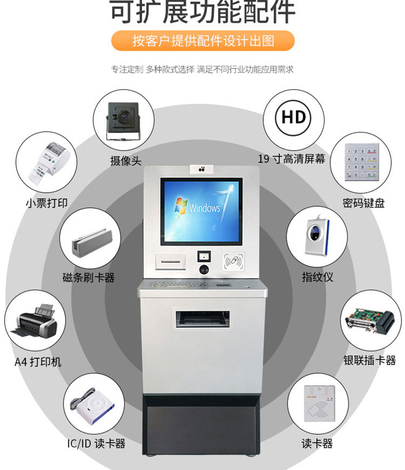 自助終端機(jī)定制:定制各種場(chǎng)景各種款式非標(biāo)終端機(jī);例如訪客機(jī)、景區(qū)自助取票機(jī)、醫(yī)院繳費(fèi)查詢機(jī)、醫(yī)院自助取單機(jī)、社保查詢機(jī)、室內(nèi)外廣告機(jī)、排隊(duì)叫號(hào)機(jī)、工控一體機(jī)、電力繳費(fèi)查詢機(jī)、圖書自助銷售機(jī)、便攜式計(jì)算機(jī)、酒店自助入住機(jī)、自助收銀機(jī)等終端。