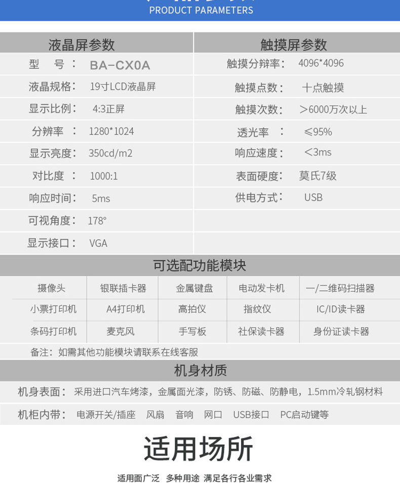 自助終端機定制:定制各種場景各種款式非標終端機;例如訪客機、景區(qū)自助取票機、醫(yī)院繳費查詢機、醫(yī)院自助取單機、社保查詢機、室內外廣告機、排隊叫號機、工控一體機、電力繳費查詢機、圖書自助銷售機、便攜式計算機、酒店自助入住機、自助收銀機等終端。