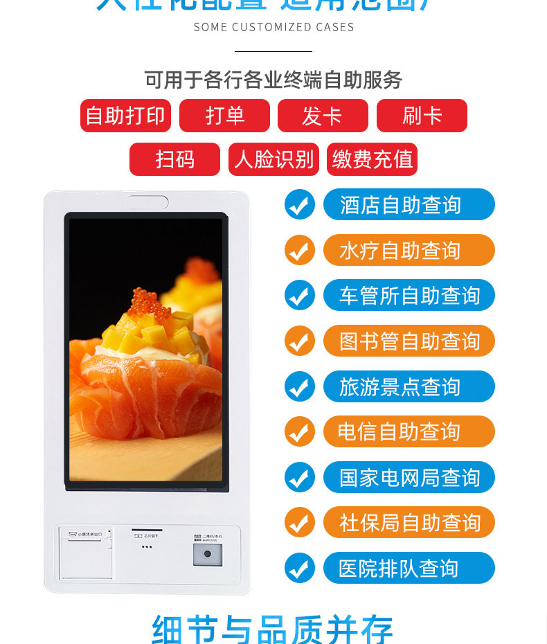 壁掛觸摸一體機醫(yī)院社保餐飲自助點餐機繳費充值智能終端系統(tǒng)軟件開發(fā)