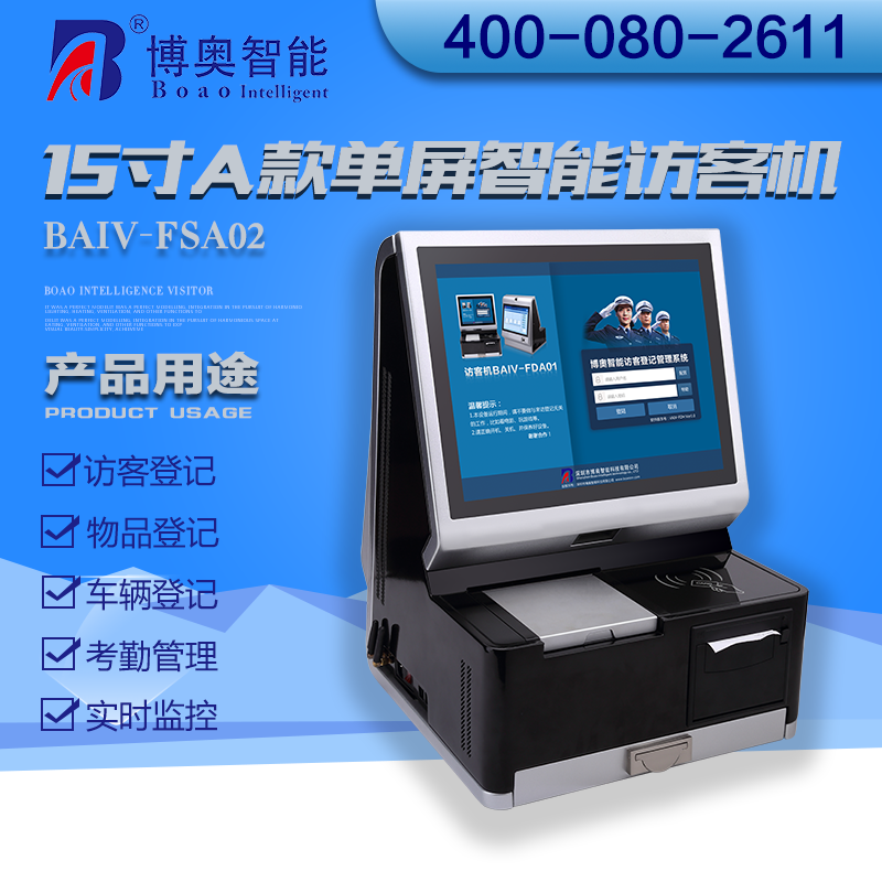 ? ? ? 15寸A款單屏智能訪客機主要用在政府機關(guān)、關(guān)口、機場、軍隊、公安、法院、學(xué)校、事業(yè)單位、花園小區(qū)、高檔寫字樓、工廠等門衛(wèi)傳達(dá)室用來訪客登記管理。