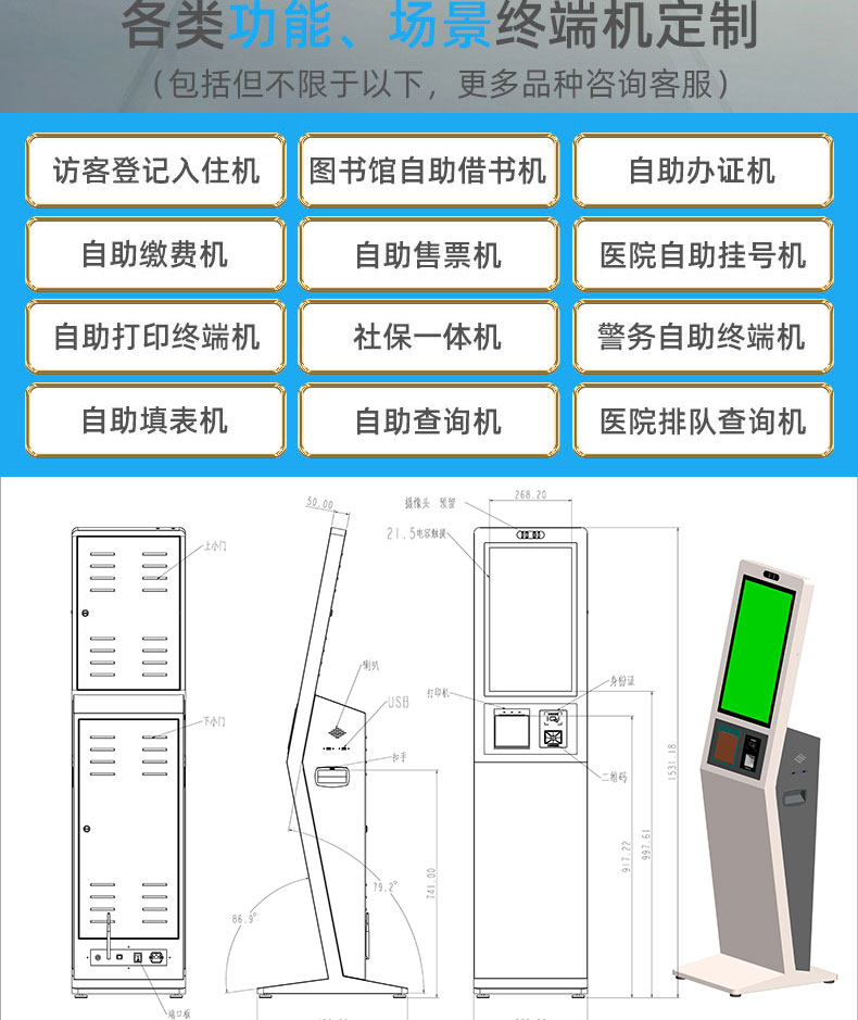 立式觸摸一體機訪客登記排隊叫號政務大廳醫(yī)療掛號繳費智能終端機系統(tǒng)軟件開發(fā)