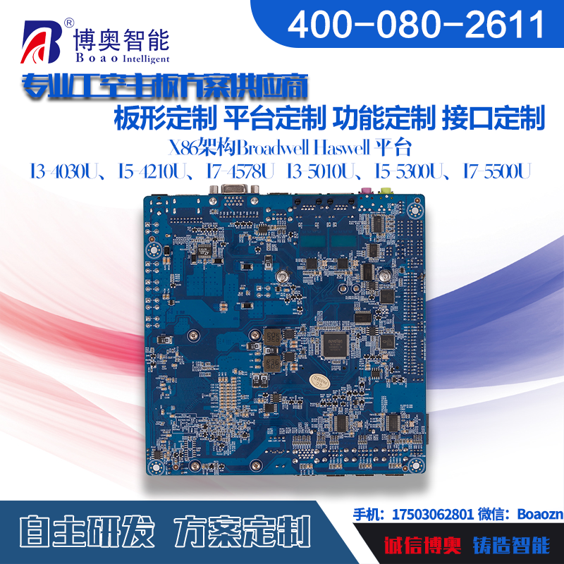 Intel Haswell和Intel Broadwell平臺主板是為我公司訪客機專用而且開發(fā)的工控主板方案,主板尺寸170mmX170mm,八層PCB板,工業(yè)級設(shè)計,它具有功能強大,集成度高,低功耗,高性能,多接口的特點,主板集成了12個USB接口 ,6個COM口,雙通大功率功放,最高支持15W,板貼4G/8G內(nèi)存及WIFI+BT功能,雙插針LVDS1、LVDS2,同時主板配有兩路DC24V輸出,兩路DC12V輸出,一路DC5V輸出;?Intel Haswell和Intel Broadwell平臺提供板形(標(biāo)準(zhǔn)板卡、非標(biāo)板卡)、功能接口等定制。