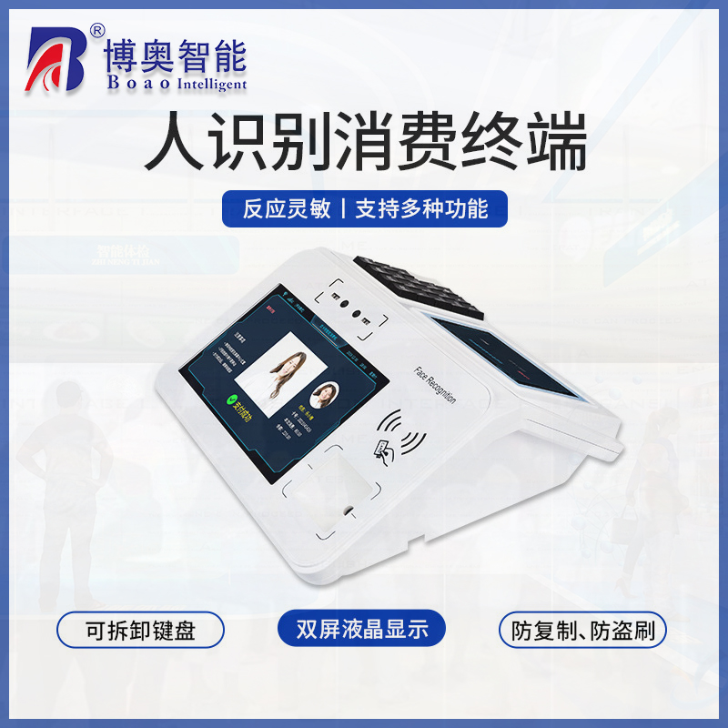近些年,我司跟緊時(shí)代發(fā)展,充分了解市場(chǎng)需求后,決定在原有消費(fèi)機(jī)基礎(chǔ)上研發(fā)改進(jìn)新一代消費(fèi)機(jī),經(jīng)過技術(shù)工程師的日夜攻克以及充分的實(shí)驗(yàn)驗(yàn)證,全新的非接觸式IC卡的消費(fèi)機(jī)擴(kuò)展人臉識(shí)別消費(fèi)機(jī)正式面世。人臉智能+食堂消費(fèi)系統(tǒng)有效的解決了傳統(tǒng)的飯票或者飯卡丟失、補(bǔ)辦的繁瑣步驟,刷臉支付更為智能、廣泛、方便。而且人臉智能+食堂消費(fèi)更能凸顯作為機(jī)關(guān)單位與時(shí)代接軌的先進(jìn)性、高效性人臉識(shí)別消費(fèi)管理系統(tǒng)是當(dāng)前廣泛使用的收費(fèi)、食堂售飯系統(tǒng)。它采用了雙目結(jié)構(gòu)光,雙目200萬寬動(dòng)態(tài)模組、雙目活體檢測(cè)人臉系統(tǒng),并結(jié)合現(xiàn)代管理方法設(shè)計(jì)而成。具有免接觸,無損耗,技術(shù)先進(jìn),系統(tǒng)擴(kuò)張性好,無需維護(hù),投資一步到位等優(yōu)點(diǎn),避免了因接觸IC卡的讀寫、油污、芯片裸露等缺陷造成的各種故障。是取代磁卡,無接觸式人臉的收費(fèi)機(jī),是廣大學(xué)校,企事業(yè)單位提高管理水平,實(shí)現(xiàn)電腦化的優(yōu)先選擇。