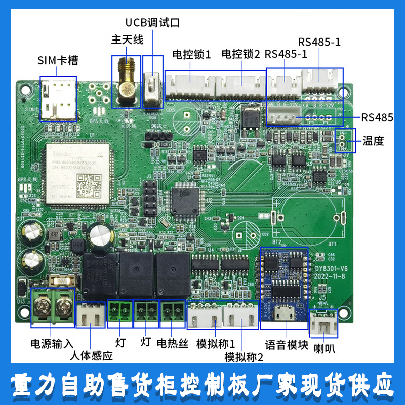 重力柜4G主控板人體感應(yīng)智能語音播報售貨機(jī)免費提供開發(fā)指令集自助販賣機(jī)自動稱重控制板套件按需定制 免費開發(fā)工業(yè)控制 智能電器物聯(lián)家居主控PCBA方案硬件電路板