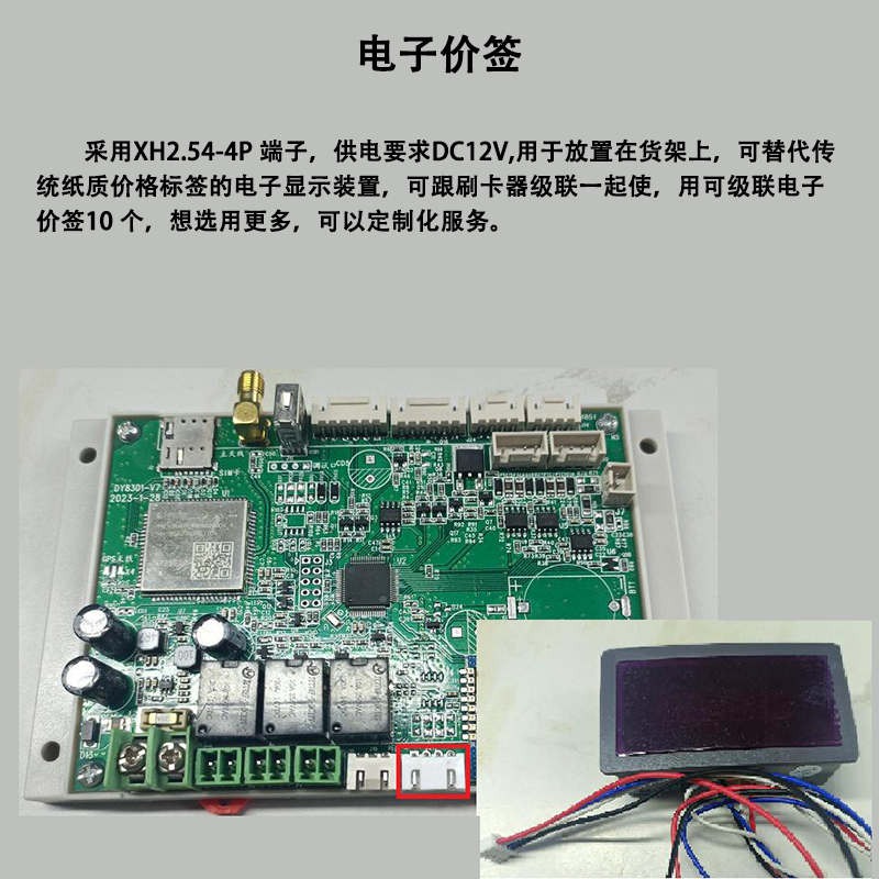 產(chǎn)品功能:4G通信 電插鎖 數(shù)字稱 語音模塊播報 人體感應(yīng) 燈光控制 電子價簽 485IC 刷卡器