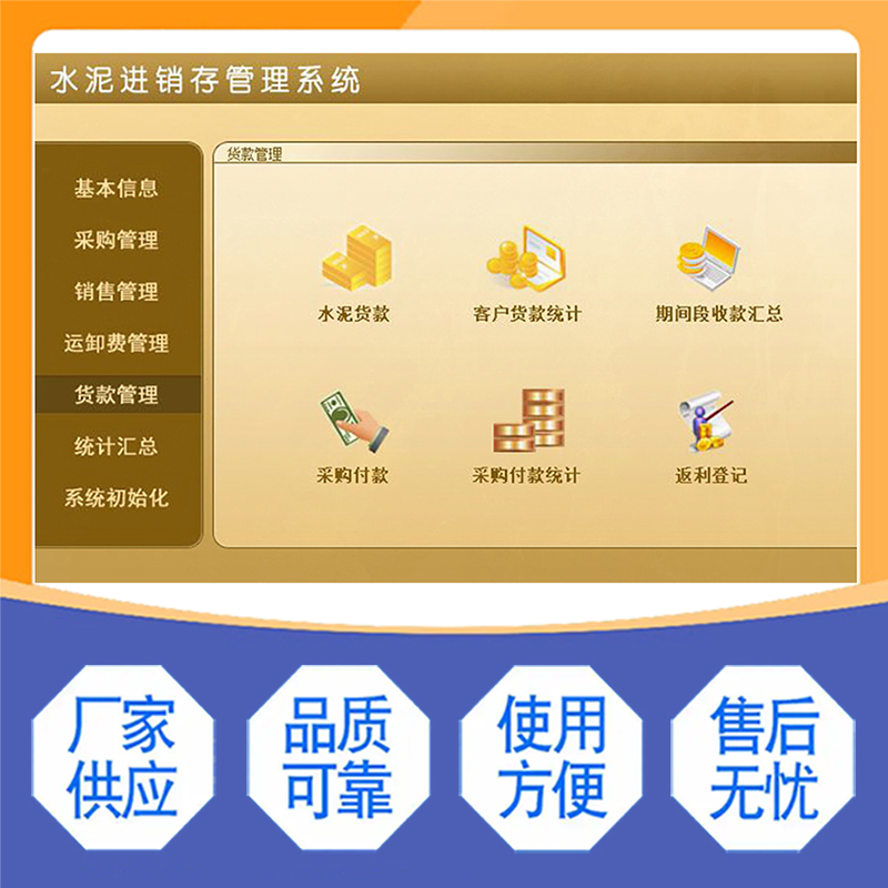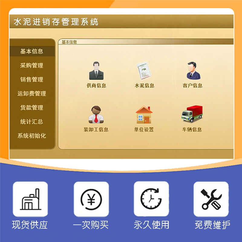 水泥進銷存管理系統(tǒng)現(xiàn)貨供應(yīng)免費試用一次購買永久使用按需定制開發(fā)各行業(yè)應(yīng)用軟件